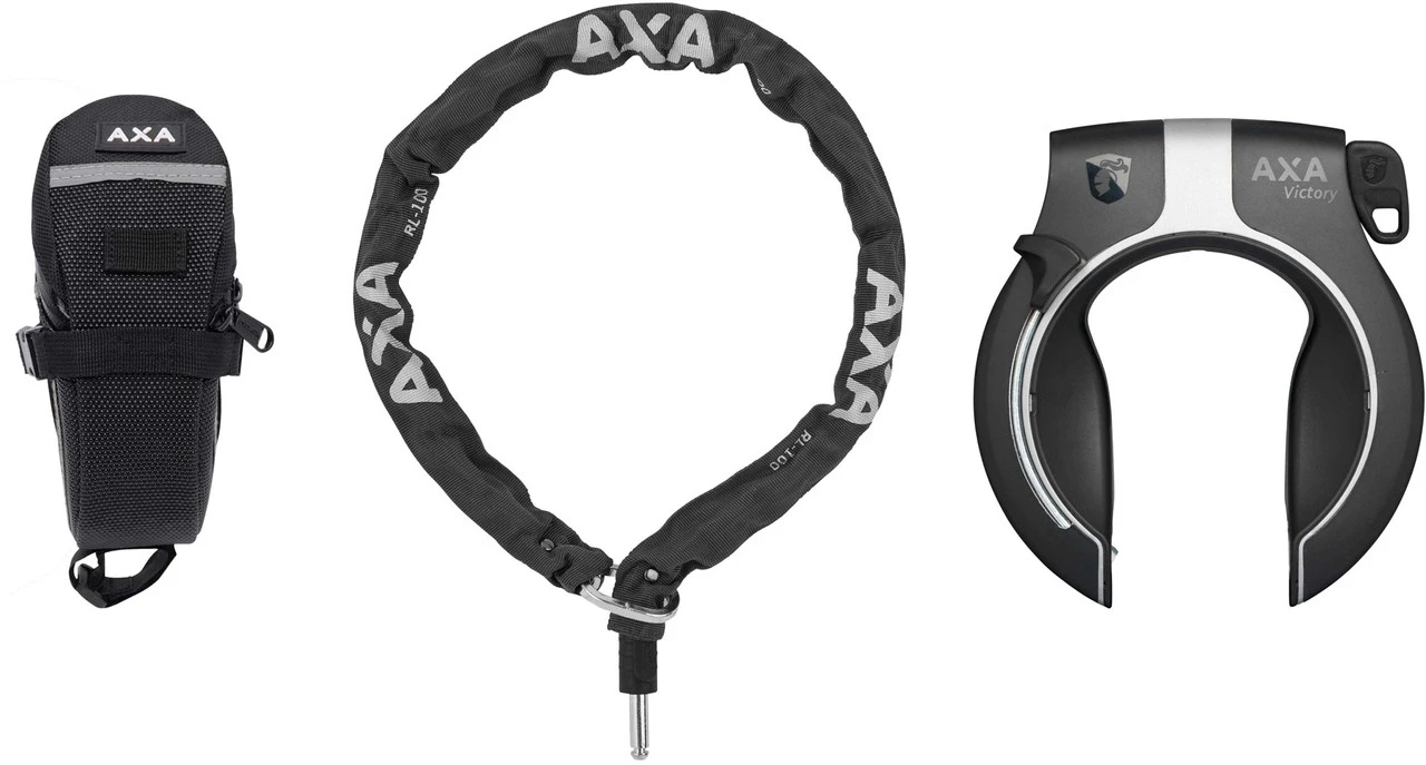AXA Victory Rahmenschloss + RLC 100 Einsteckkette + Satteltasche Set
