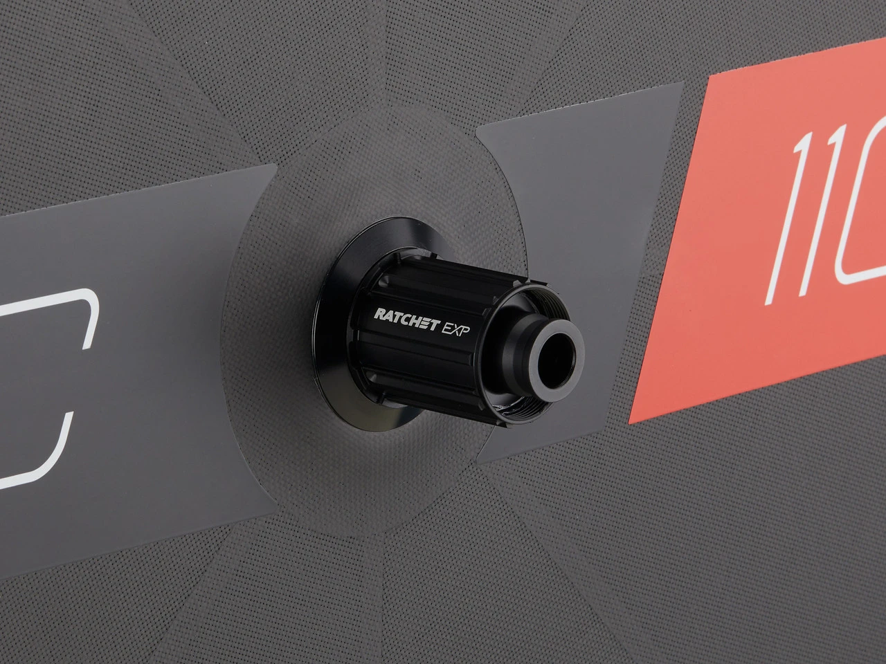 Das Scheibenlaufrad ist für 28 mm breite Reifen ausgelegt und wiegt lediglich 1100 g. Außerdem profitierst Du von einem deutlichen Segeleffekt. Auf der Antriebsseite ist das Rad flach, wodurch genug Platz für Dein Schaltwerk bleibt. Die Bremsseite hat eine leicht konvexe Form, wodurch die auftretenden Brems- und Antriebskräfte optimal verteilt werden. Die windschnittige 180 Nabe für Center-Lock-Bremsscheiben mit Ratchet EXP Zahnscheibenfreilauf sorgt zusätzlich für maximalen Vortrieb. Damit sich Deine Beinkraft ideal entfalten kann, hat der Freilauf 36 Zähne, die für eine direkte Kraftübertragung sorgen, wodurch unerwünschter Leertritt so gering wie möglich gehalten wird. Hinter einer Carbon-Kappe versteckt, findest Du das Ventilloch. Diese öffnest Du mit einer 90-Grad-Drehung ganz einfach ohne Werkzeug. Zur Sicherstellung der Aerodynamik schließt die Ventillochabdeckung nahtlos mit der Scheibenwand ab.