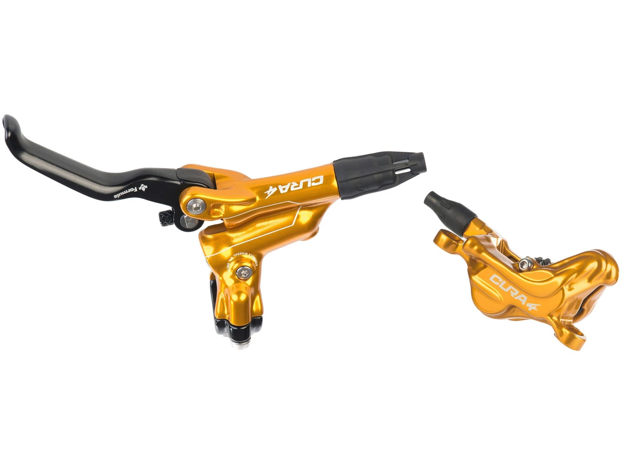 Spezifikationen:Serie:Cura 4Einsatzbereich:Downhill, Enduro, E-MTBBremsentyp:hydraulisch, 4-KolbenBremsmedium:MineralölLeitungslänge:1750 mmTechnische Daten Bremssattel:Montage Bremssattel:PostmountKolben:4Bremsbelag:organischMaterial Bremssattel:AluminiumLeitungsanschluss:geradeTechnische Daten Bremsgriff:Hebellänge:2-FingerEinstelloptionen:Griffweiteneinstellung (werkzeuglos)Montage:Klemmschelle (geteilt)Bauart:Flip-Flop (seitenunspezifisch)Material Bremshebel:AluminiumMaterial Bremsgriffgehäuse:AluminiumLeitungsanschluss:geradeFeatures:4-Kolben Bremssattel mit 18 mm Kolbendurchmesser bieten enorme Bremskraft bei bester Modulationder ergonomische Hebel sorgt für maximale Kontrolle und ein optimales GriffgefühlHerstellernummern:glossy black:FD94175-4Ugold:FD94175-4Gpolish:FD94175-4PLieferumfang:1 x Scheibenbremse Formula Cura 4ohne Bremsscheibeohne Adapter1 x Insertpin inkl. O-Ring1 x Olive1 x Überwurfmutter1 x Leitungstülleinkl. Befestigungsmaterial