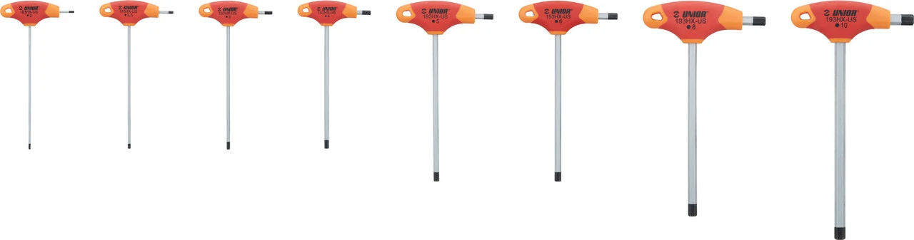 Lieferumfang:1 x Innensechskant-Schlüsselset Unior Bike Tools 193HX T-Griff, 8-teilig