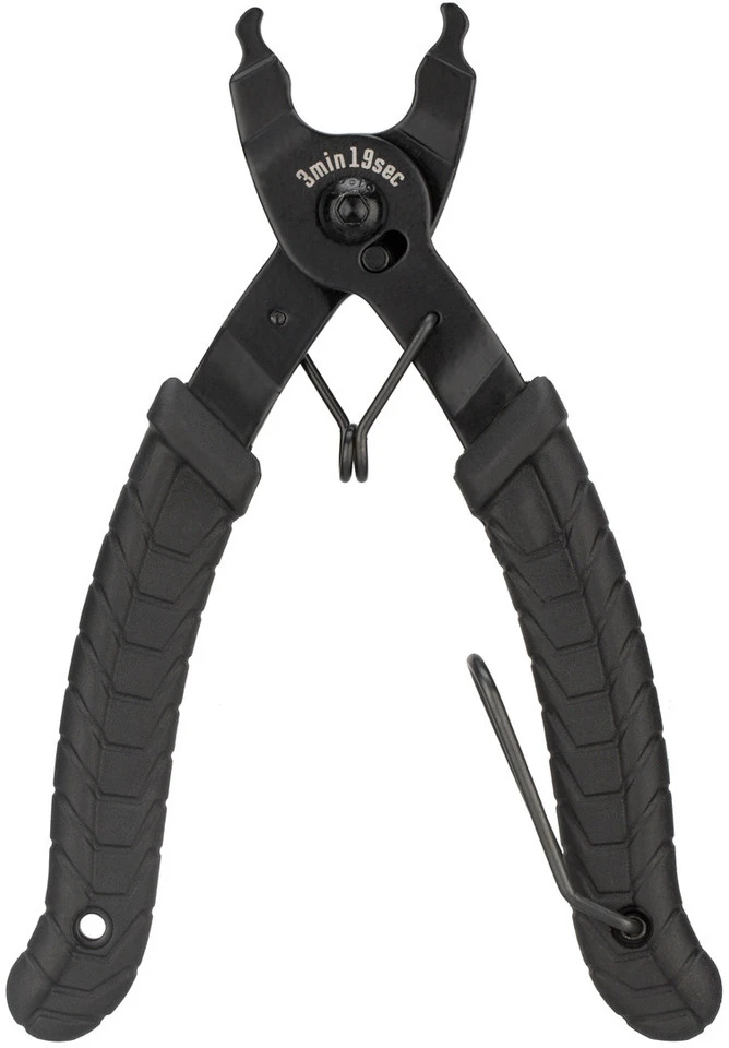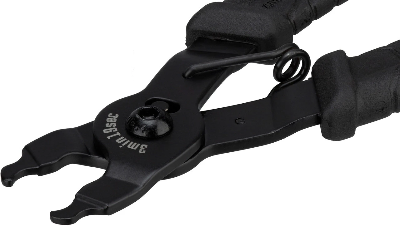 Die Kettenverschlussgliedzange von 3min19sec ist ein professionelles Werkzeug, das dem Öffnen und Schließen von Ketten mit Kettenschloss dient. Dank der integrierten Feder und des ergonomischen Griffs ist es besonders komfortabel zu benutzen. Wenn Du sie nicht mehr brauchst, kann die Zange mit einem Sperrdraht gesichert werden. Die Kettenverschlussgliedzange ist mit 8-fach, 9-fach, 10-fach, 11-fach und auch 12-fach Ketten der Hersteller SRAM, Shimano, KMC und Campagnolo kompatibel. Ein schickes 3min19sec Logo ist eingelasert.