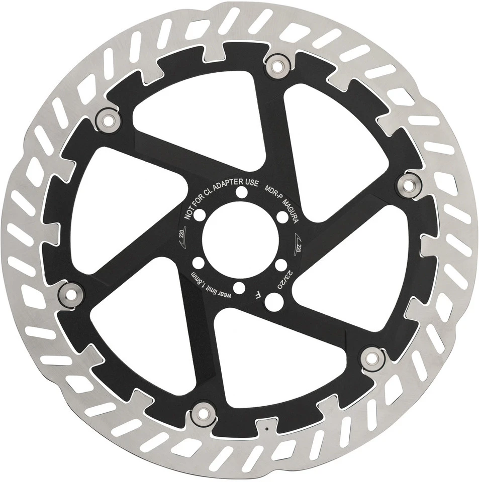 Die MDR-P 6-Loch Bremsscheibe von Magura mit zweiteiliger Bauart bewirkt konstante Bremsleistung, auch unter dauerhaft hoher Belastung. Dies gelingt dank der patentierten Dovetail Interlink Technologie, einer speziellen Verzahnung des Außen- und Innenrings. Diese ermöglicht bei Wärmeausdehnung des Außenrings eine zusätzliche Abstützung am Innenring. So wird das Drehmoment nicht ausschließlich über die Nieten, sondern über die gesamte Fläche übertragen, woraus sich eine erhöhte Steifigkeit und direkte Wärmeableitung bei Dauerbelastung ergibt, wie sie im Gravity-Einsatz vorkommt. Die Variante mit 220 mm Durchmesser schafft rund 10 % mehr Bremskraft als ein 203 mm-Modell und 20 % mehr als ein 180 mm-Modell. Die für den Belag kritischen Temperaturen werden deutlich später erreicht und die höhere Masse der Bremsscheibe verringert die Gefahr von Brems-Fading und reduziert den Belagverschleiß um 15 %. Die Bremsscheibe ist außerdem optimiert für den E-Bike-Einsatz.