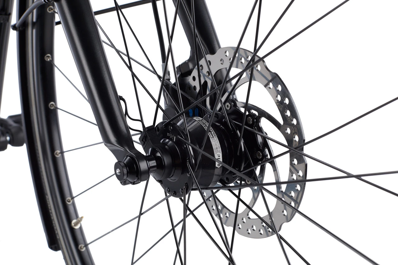 Das Vortrieb Modell 1 Herren Fahrrad stellt die erste komplette Eigenentwicklung unter unserer Marke Vortrieb dar. Als wesentliches Element sticht das revolutionäre Wingee Schutzblech-Gepäckträgersystem von Racktime hervor, das mit langlebigen, extrem hochwertigen Komponenten kombiniert wurde: einer Alfine 11-Gang Nabenschaltung mit Gates Riemenantrieb, Beleuchtung von Supernova und Kontaktpunkten von Ergon. Das alles ist vom Feinsten und 100 % unser Ding. Das Modell 1 macht „Vortrieb“ alle Ehre: Der Rahmen ist steif und wandelt jede Pedalumdrehung effektiv in Vortrieb um. Die starre Gabel und der breite Lenker sorgen für ein reaktives Handling. Die Bremsen langen richtig zu. Die Sitzposition ist sportiv und zentral. Hier bleiben wir uns und dem Markennamen treu – und das ist einfach konsequent.