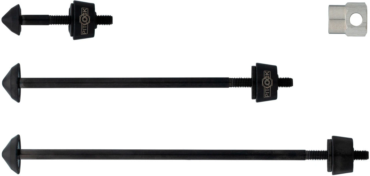 Lieferumfang:1 x Sicherung Pitlock für Vorderrad1 x Sicherung Pitlock für Hinterrad1 x Sicherung Pitlock für Sattelstütze1 x Schlüssel (PIT)1 x Ausweis Pitlock