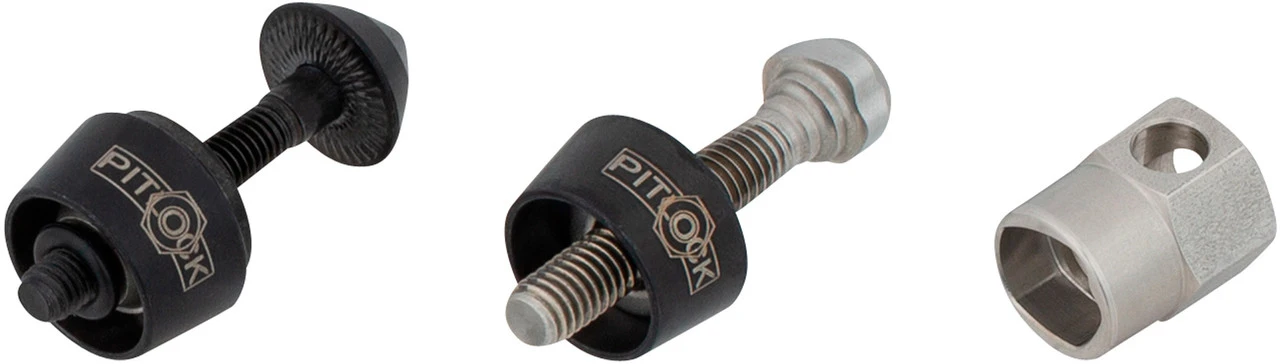 Codeschraube M6Achse: 23 mmZusatzachse: Keine, dafür M6 Codeschraube mit 32 mm Einbaulänge für SackbohrungLieferumfang:2 x Achse mit Verschluss1 x Schlüssel (PIT)1 x Ausweis Pitlock