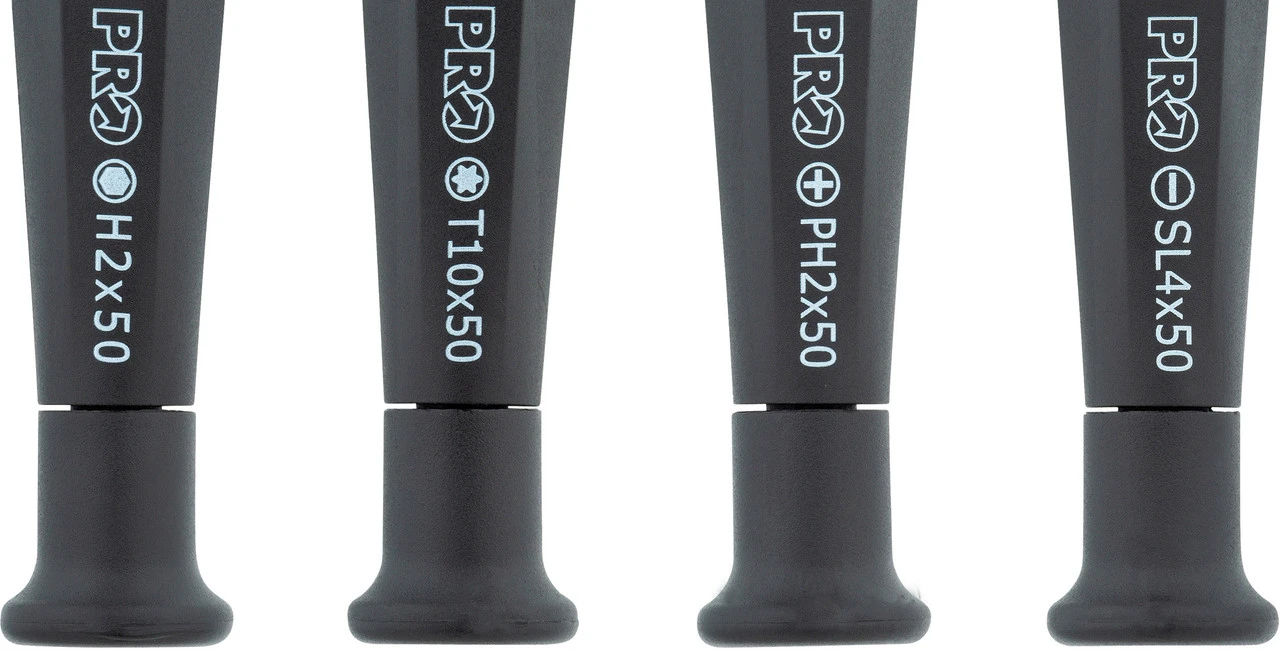 Das 4-teilige PRO Fine Adjustment Schraubendreherset hilft bei Arbeiten, die besondere Präzision erfordern, wie beispielsweise der Feinjustierung des Schaltwerks. Es umfasst einen Innensechskant-, einen Torx-, einen Schlitz- und einen Kreuzschlitz-Schraubendreher.