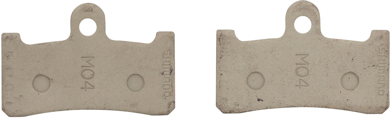 Die Shimano Bremsbeläge M04 sind mit der XT BR-M755 Scheibenbremse kompatibel. Es handelt sich um einen Kunststoff-Bremsbelag aus Resin, der sich durch größere Geräuscharmut als bei Metallbelägen auszeichnet. In Sachen Bremskraftniveau liegen die M04 über dem Durchschnitt.