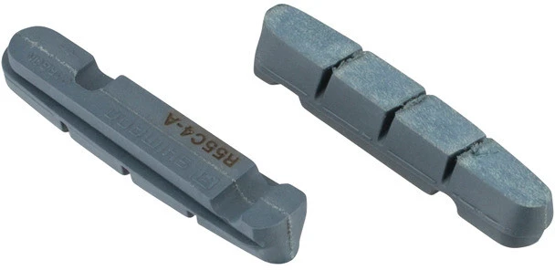 Die Shimano R55C4-A Bremsgummis haben einen 1 mm dünneren Belag als R55C4 und eignen sich daher nur für breite Carbonfelgen mit einem Durchmesser von 19 bis 28 mm. Sie sind mit aktuellen und älteren Dura-Ace, Ultegra, 105 Felgenbremsen (Standard- und Direktmontage), mit gruppenlosen und Cantilever-Bremsen kompatibel. Sowohl auf der Straße wie im Matsch halten R55C4 Bremsbeläge überdurchschnittlich lang.