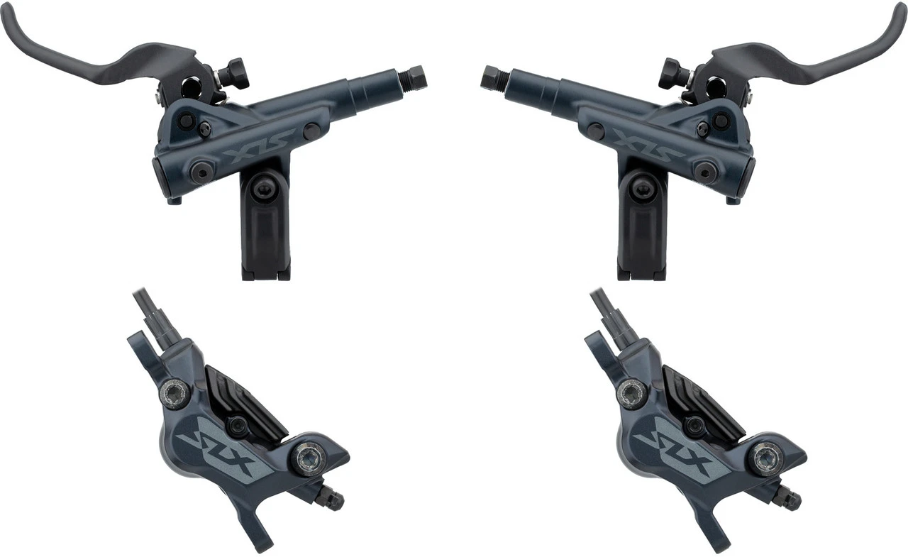 Mit der BR-M7120 (VR + HR) bietet Shimano erstmals ein eigenständiges SLX Bremsenset speziell für den Trail- und Enduro-Bereich an. Die Bremssättel verfügen über vier Kolben und zeichnen sich durch ein schnelles, einfaches Anschlusssystem aus. Die Bremsgriffe BL-M7100 wurden mit einem neuartigen Design versehen, welches die Steifigkeit erhöht und für ein direkteres Feedback sowie mehr Bremsperformance sorgt. Natürlich sind sie mit Shimano Servo Wave Technologie ausgestattet. Bei kürzerem Leerweg steht somit mehr Leistung ohne lange Reaktionszeit zur Verfügung.