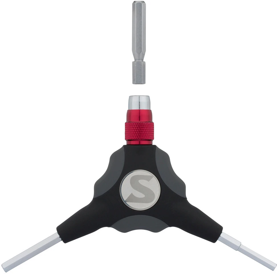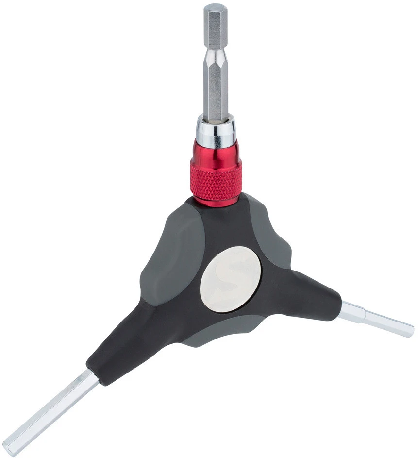 SILCAs Ypsilon Wrench Y-Schlüssel ist ein praktisches Werkzeug, das einen magnetischen 1/4″ Bithalter, einen 4 mm und einen 5 mm Innensechskant enthält. Der ergonomische Griff lässt eine leichtere Kontrolle und mehr Stabilität als ein üblicher Innensechskantschlüssel zu. Der Schlüssel verfügt nur über geringe Toleranzen. Dadurch passt das Werkzeug exakt und die Wahrscheinlichkeit des Ausdrehens von Schraubenköpfen sinkt. Dies führt zu einer längeren Haltbarkeit.