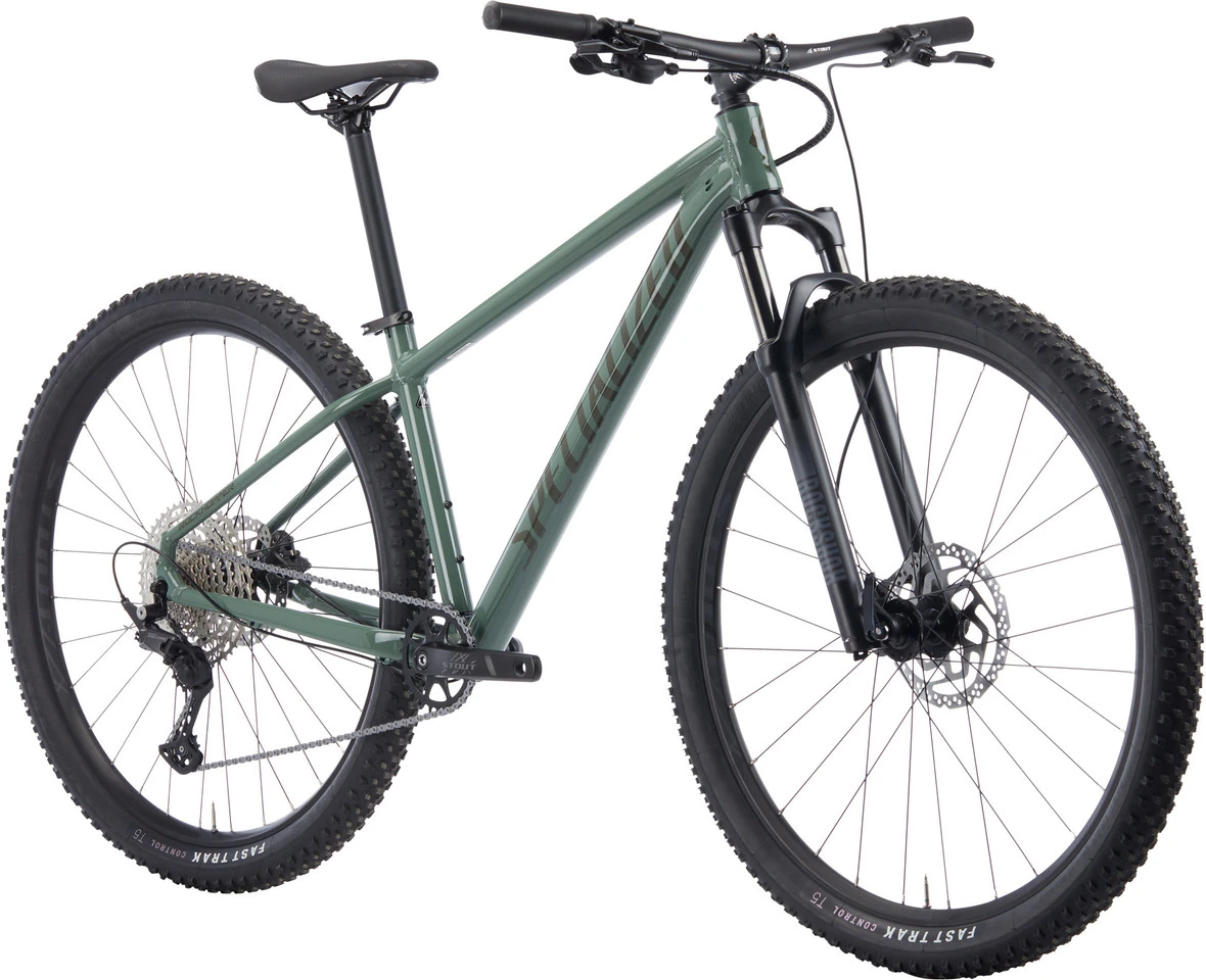 Spezifikationen:Einsatzbereich:All MountainLaufradgröße:29″Federweg:80 mm (S), 90 mm (M), 100 mm (L – XXL)Größen:S, M, L, XL, XXLMaterial Rahmen:Aluminium (A1)Komponenten:Rahmen:Specialized Rockhopper, konifiziertes Premium-Aluminium, 10 x 135 mmGabel:RockShox Judy, Solo Air, Turnkey-Dämpfung, Stahl-Gabelschaft, 46 mm Vorlauf, 97 mm Nachlauf, 9 x 100 mmVorbau:Specialized, Aluminium (3D-geschmiedet), 7° Rise, 31,8 mmLenker:Stout Mini Rise, Aluminium, 15 mm Rise, 9° Backsweep, 31,8 mmGriffe:Specialized MTB Lock-OnRemote System:ohneSteuersatz:Specialized S212500004, Zero StackSattelstütze:Aluminium, 30,9 mm, 2-Schrauben-KlemmungSattel:Specialized Bridge Sport, StahlstrebenKurbel:Stout 1-fach, geschmiedetes Aluminium, 30 Z, 73 mm Vierkant-Innenlager, 122,5 mm AchslängePedale:SBC-54 PlattformBremsen:Shimano BR-MT200, hydraulische Scheibenbremse, 180 mm/180 mmSchalthebel:Shimano Deore M5100, 11-fachSchaltwerk:Shimano Deore M5100, SGS-Käfig, 11-fachKassette:Shimano Deore, 11-fach, 11-51 ZKette:KMC X11 EPT, 11-fach, Antikorrosionsbeschichtung, mit wiederverwendbarem Missing LinkFelgen:Specialized, Aluminium, ohne Haken, Tubeless Ready, 25 mm MaulweiteSpeichen:Edelstahl, 14 GVorderradnabe:Formula DC-20, Disc 6-Loch, 9 x 100 mm SchnellspannerHinterradnabe:Formula DC-22, Disc 6-Loch, 10 x 135 mm SchnellspannerReifen Vorderrad:Specialized Fast Trak, Control-Karkasse, T5-Gummimischung, 29 x 2,35″Reifen Hinterrad:Specialized Fast Trak, Control-Karkasse, T5-Gummimischung, 29 x 2,35″Freigaben:Gewichtsbeschränkung:136 kg (Fahrer + Gepäck)Features:leichtes, aber steifes Materialerhöhte Schrittfreiheitinterne Kabelführungluftgefederte Gabel mit Turnkey-Dämpfung für sensibles Ansprechen und passenden Federwegzuverlässige, bewährte Shimano-Schaltungtubelesskompatible Felgen und Reifen bieten viel TraktionScheibenbremse mit Kettenstrebenmontageaustauschbares Aluminium-SchaltaugeGepäckträgeraufnahmenmit verstellbaren Sattelstützen kompatibelSchläuche mit 40 mm SV-VentilAluminium-Sattelklemme mit Schnellspanner, 34,9 mmGeometrie:(basierend auf einer Gabeleinbaulänge von 505 mm (S) bzw. 515 mm (M – XXL))
