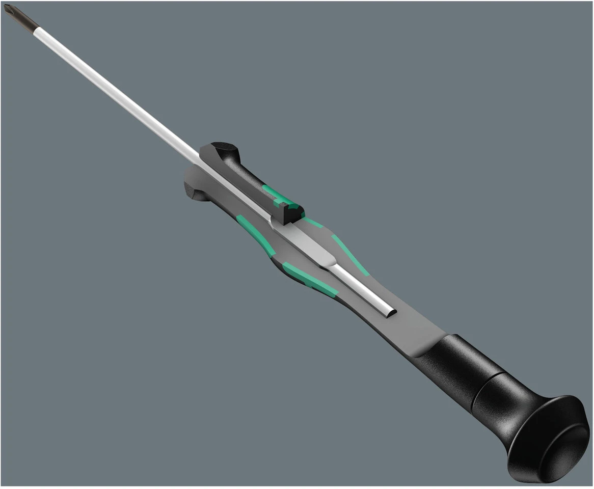 Hochwertiger Micro-Schraubendrehersatz von Wera für feinmechanische Verschraubungen. Durch Abstützen der Hand auf der Drehkappe und durch die Schnelldrehzone unterhalb der Drehkappe ist blitzschnelles Arbeiten möglich und zeitintensives Umgreifen entfällt.